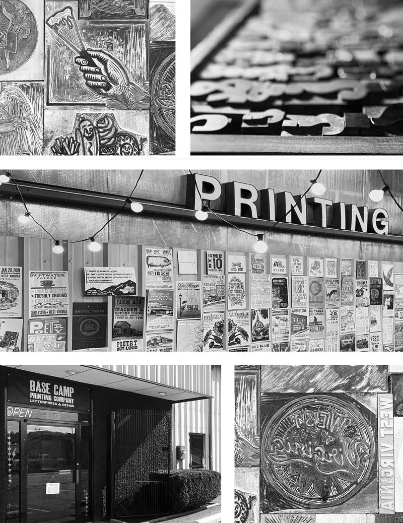 Base Camp Printing Co. is a sister-run letterpress shop and design studio in Charleston, WV creating modern designs using traditional methods.