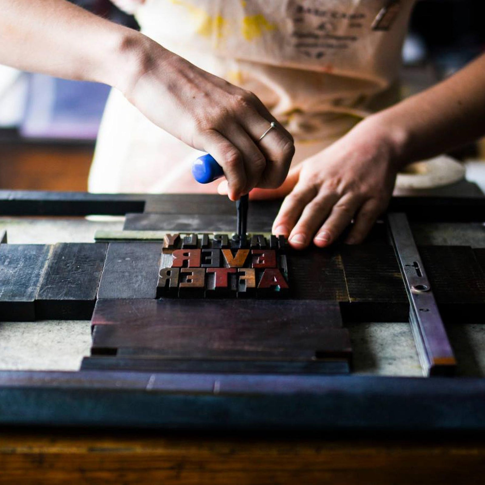 Everything from concert and event posters to personal stationery and wedding invitations is designed in-house and printed by hand on old-school printing presses using traditional methods of setting type and hand-carving images.