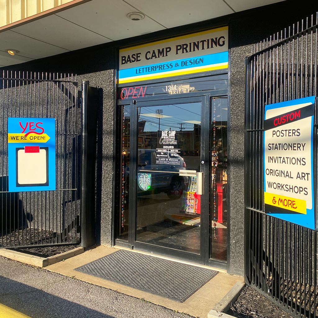 Base Camp Printing Co. is a sister-run letterpress shop and design studio in Charleston, WV creating modern designs using traditional methods.