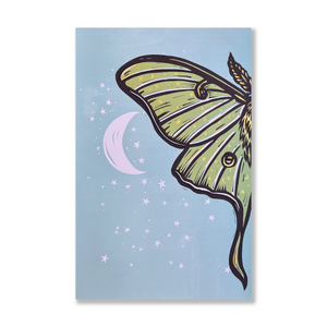 Double poster featuring the beautiful luna moth! Buy individual sides or both posters to create a statement on your wall.