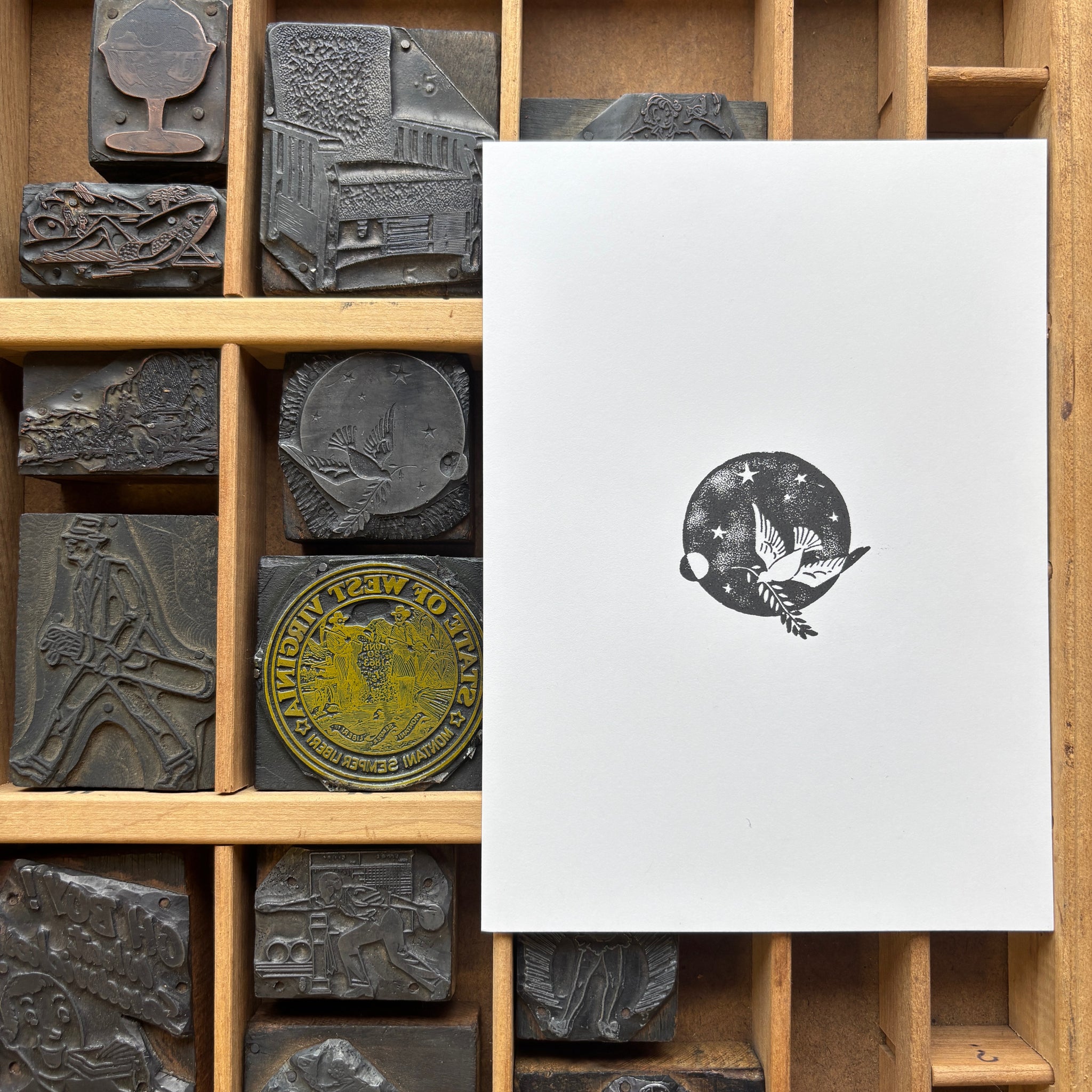 Dove - Vintage Letterpress Block 5x7 Print