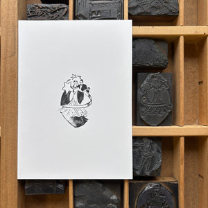 Hand printed using a vintage letterpress printing block and oil-based ink