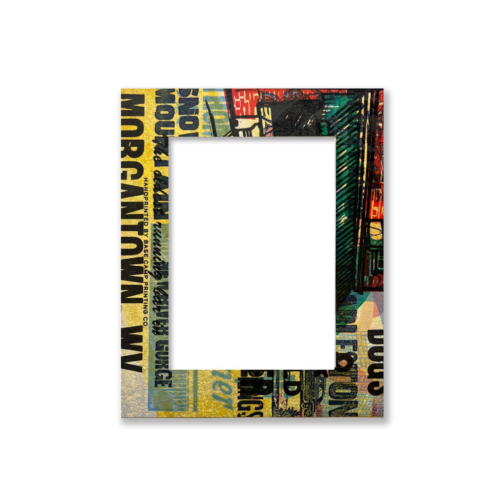 Test prints are made during the trial and error process of lining up a print on the press. They are the result of using the same piece of paper over and over again to test out where a design will land on the paper and also to pull ink off the press when we are cleaning.