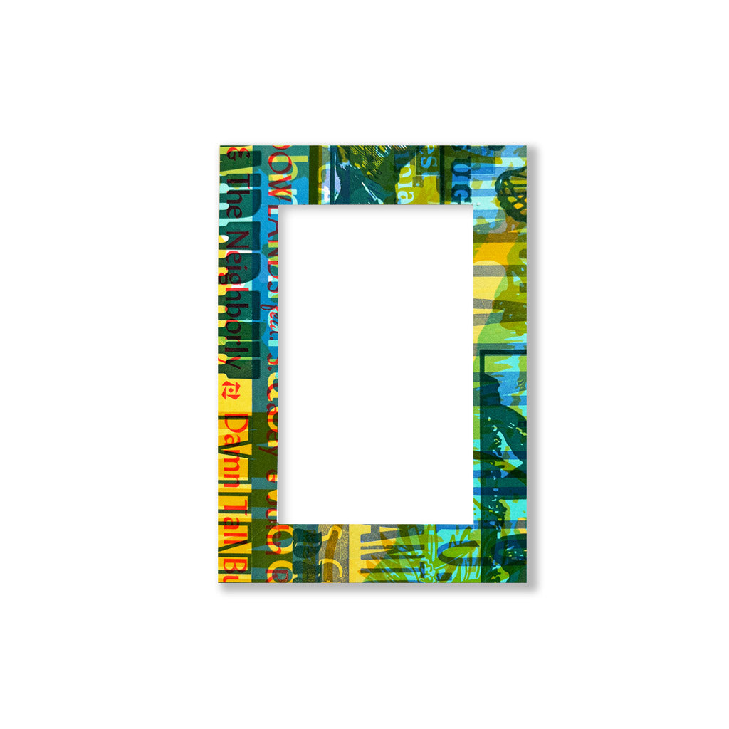 Test prints are made during the trial and error process of lining up a print on the press. They are the result of using the same piece of paper over and over again to test out where a design will land on the paper and also to pull ink off the press when we are cleaning.