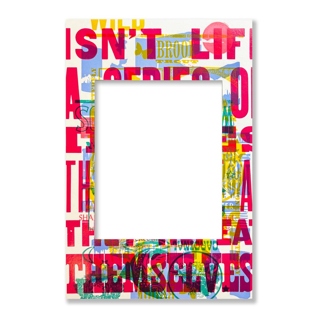 Test prints are made during the trial and error process of lining up a print on the press. They are the result of using the same piece of paper over and over again to test out where a design will land on the paper and also to pull ink off the press when we are cleaning.